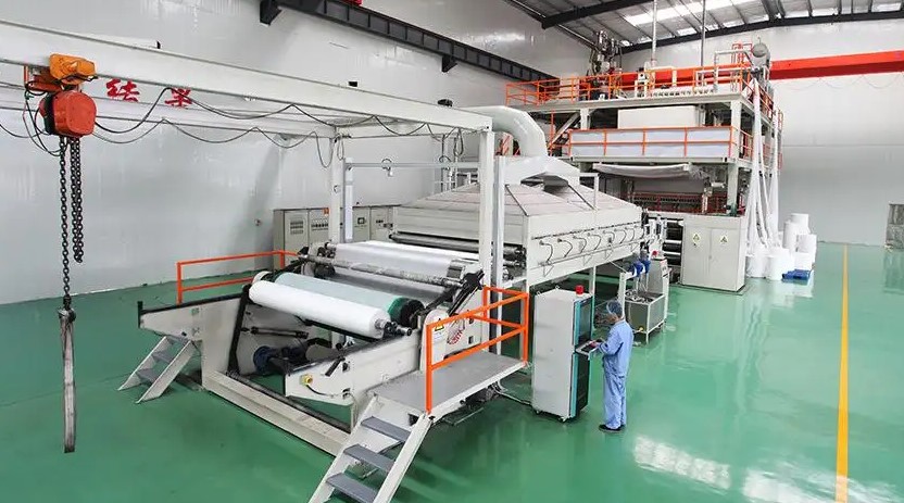 首先將無紡布的原料高分子聚丙烯放入螺桿擠出機中加熱熔融,將熔融的聚丙烯輸送到過濾器中過濾雜質(zhì),然后將熔體通過計量泵定量輸送到噴絲板組件中。此時噴絲孔兩側(cè)的熱空氣會以接近音速的速度吹動流動的熔體,使其迅速變細,并在下落過程中被兩側(cè)的牽引空氣冷卻凝固成超細纖維,最后凝聚在一個輥筒上。通過自粘合成布,這樣生產(chǎn)出來的布不是用紗線織成網(wǎng),而是直接省略了加工成線的步驟,纖維粘合成布,所以稱為無紡布。在從噴絲板擠出熔體的過程中,主要的電機設(shè)備是單螺桿擠出機。