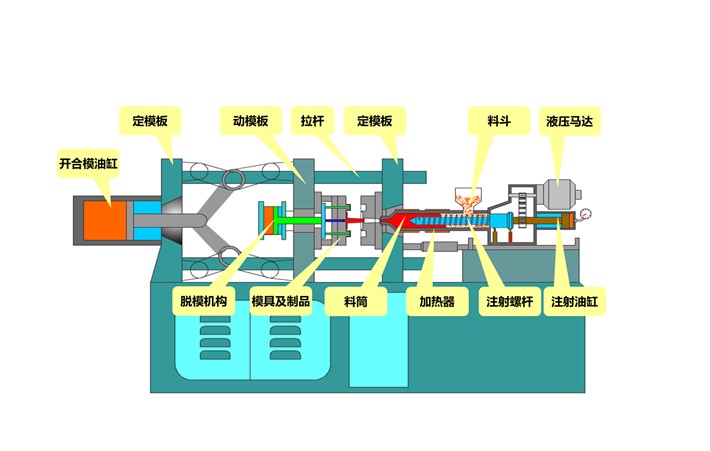 二、注塑機(jī)的組成結(jié)構(gòu)以及對(duì)應(yīng)的工作流程